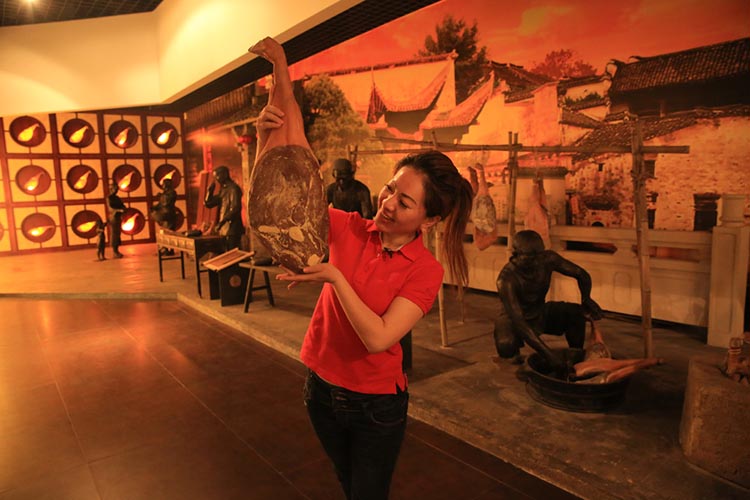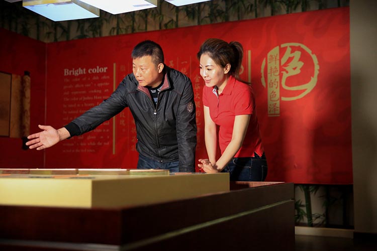 在火腿博覽館取景的過程中,主持人對火腿制作工藝和火腿的造型產生了濃厚的興趣:修胚、上鹽、洗曬、整形、發酵、聞香等工序不但精細且充滿了儀式感。陳師傅向她介紹:傳統火腿制作工藝工序多達36道,金字火腿遵循古法工藝制作,保證金字出產的每一條腿都是“復古”的“美味腿“。為什么說是美味腿?在金字火腿的中國火腿博覽館內,欄目組對著一桌的仿真火腿菜肴大呼驚嘆,忍不住都想拿起筷子吃上兩塊。