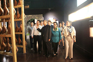 6月28日下午,省人大常委會副主任馮明一行在金華市人大常委會副主任陳志身等的陪同下,參觀考察了建于金字火腿內的中國火腿博覽館和世界火腿博覽館,了解金華火腿的行業發展現狀。 金字火腿總經理吳月肖向馮明一行介紹了金華火腿的歷史文化、傳統制作工藝、營養價值和儲存食用方法。馮明指出,金華火腿雖然是一個傳統行業,但也要跟上形勢,通過各種渠道進行推廣傳播,她特別強調了互聯網營銷在當代企業發展中的作用,十分關心企業在這一方面的發展……