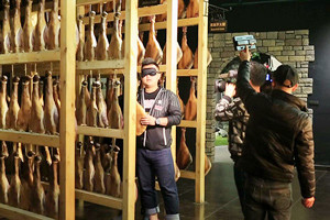 近日,浙江衛視《廚星高照·美食兄弟連》欄目組來到浙江金華探訪巴瑪火腿鮮為人知的秘密。 浙江第一美食類電視欄目《廚星高照》的主持人陳黃臻號稱美食小霸王,肉食主義捍衛者。來到巴瑪火腿的第一件事就是游覽展示了各種火腿文化的世界火腿博覽館,在這里黃臻不僅了解了世界各地的火腿品種,而且還展示了盲眼摸腿的技藝,令巴瑪火腿的工作人員也是連連贊賞。