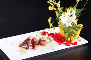 假如火腿有靈性,相信最愿意落在一位能將它千變萬化的大廚手中。就像我們一樣,在遇到真正的高手時,也總難掩興奮和激動。?華小富,一位從16歲就開始做廚師,至今已經有了十幾年從業經驗。打通我們報名電話時,他說的第一句話是:“讓我們指點你們一下,怎么做好火腿菜。”那種隔著電話就能清晰感受到的自信。? 不過親眼見到了,才知道這種自信的確有道理:從冷菜到熱菜,從主食到甜品……
