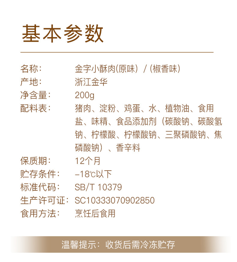- 豬肉、淀粉、雞蛋、水、植物油、食用鹽等