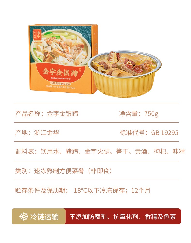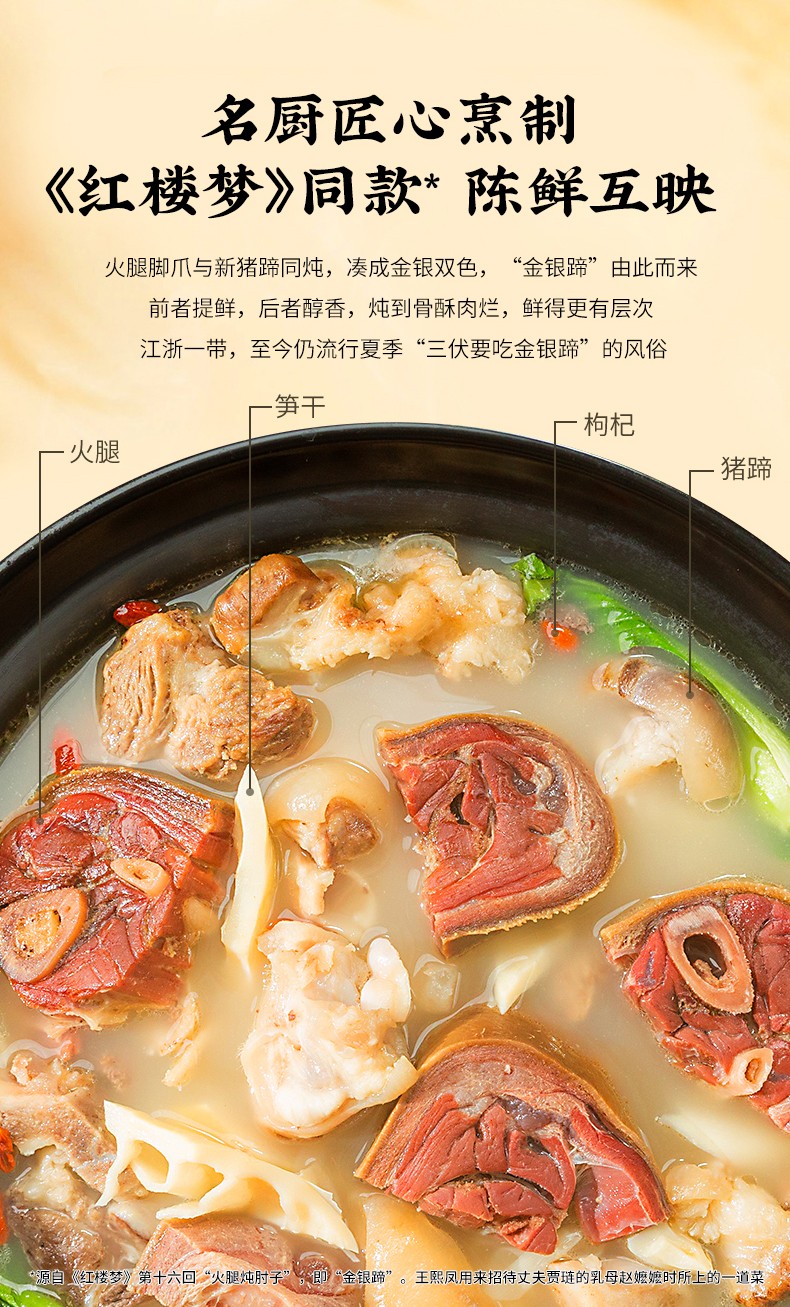 - 飲用水、豬蹄、金字火腿、筍干、黃酒、枸杞、味精